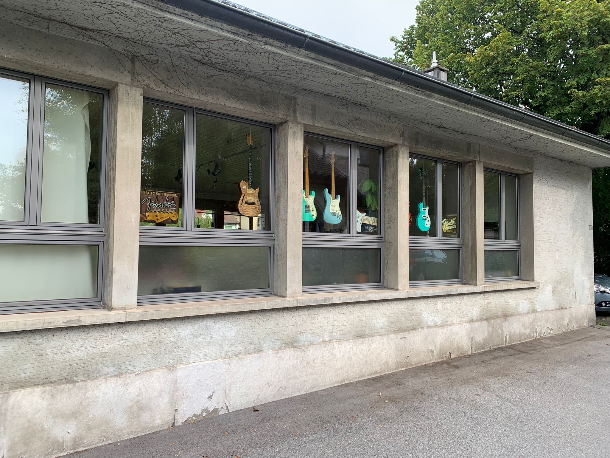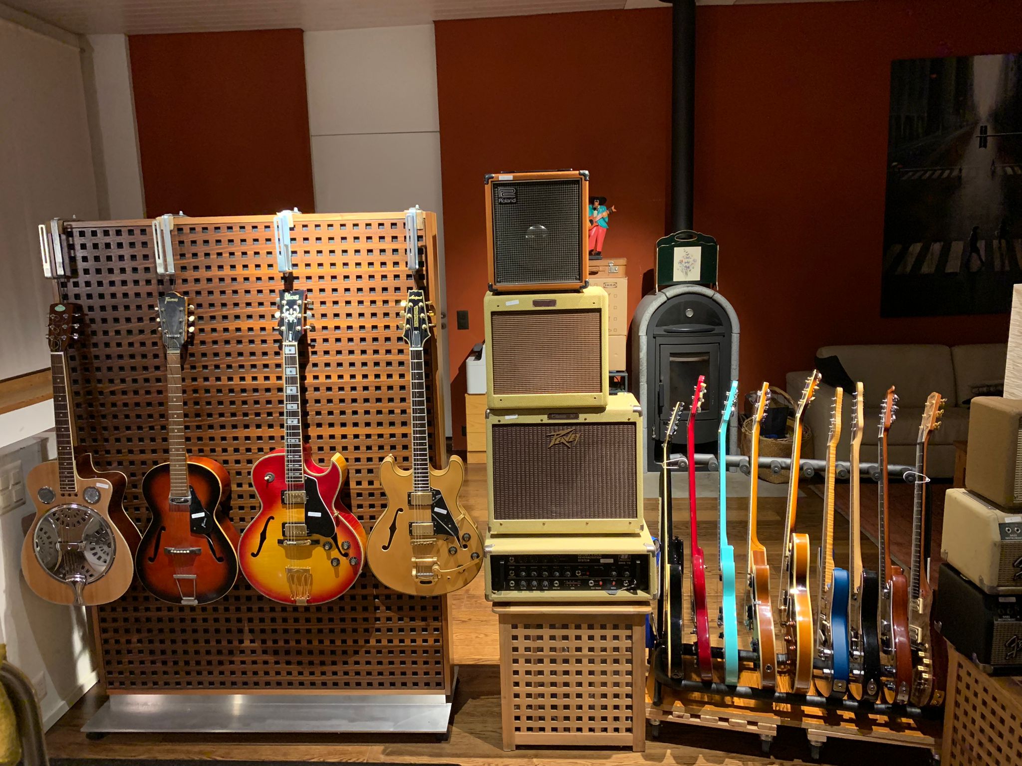 Pour sublimer les instruments de notre catalogue, nous avons organisé une exposition-vente, mettant en avant près de 30 guitares et de 10 amplis.